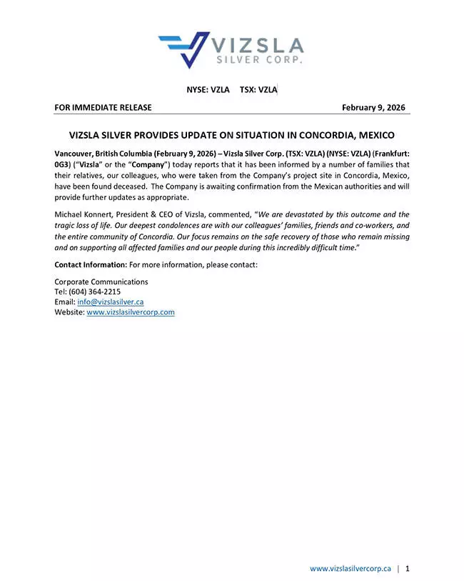 Vizsla Silver apuntó que espera la confirmación de las autoridades mexicanas, y que estarán concentrados en la recuperación segura de aquellos que siguen desaparecidos y en apoyar a todas las familias afectadas durante este “tiempo increíblemente difícil”.