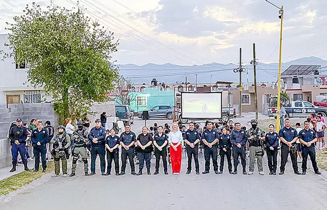Múzquiz, Coah.- El Gobierno Municipal de Múzquiz, que preside la alcaldesa Laura Patricia Jiménez Gutiérrez, en coordinación con la Dirección de Seguridad Pública Municipal, llevó a cabo el programa “Cine en tu Colonia” en la colonia Las Misiones, como parte de las acciones de prevención del delito y proximidad social.
