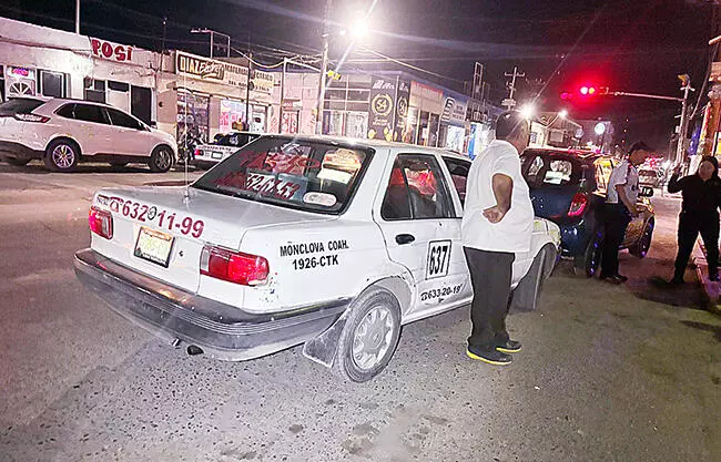 Monclova, Coah.- Un conductor de la línea Radio Taxis CTM, unidad económica 637, solicitó de manera tajante la presencia de autoridades municipales, luego de verse involucrado en un percance vial registrado frente a la Central de Autobuses. El ruletero se estacionó presuntamente en forma indebida cuando fue impactado levemente en la parte frontal de su unidad por un automóvil Nissan March, color azul.