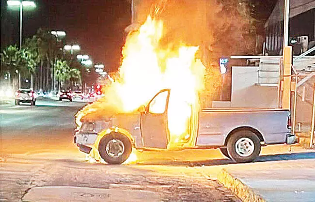 Sin embargo, al finalizar el servicio, la conductora subió al vehículo y encendió su camioneta, en el intento, la Pick Up comenzó a incendiarse.