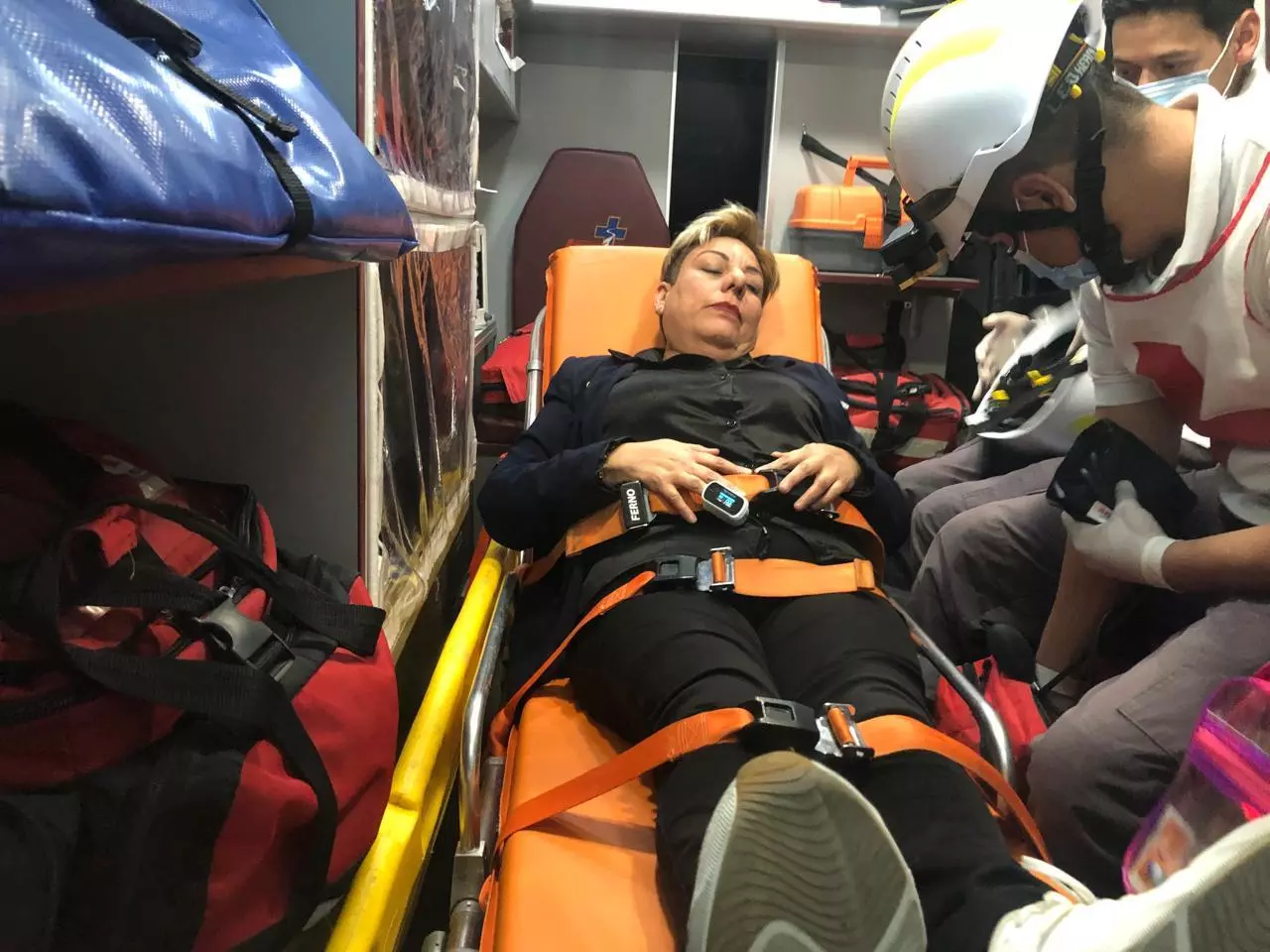 Paramédicos de la Cruz Roja acudieron al lugar para atender a una mujer identificada como Carmen, quien presentaba golpes en diversas partes del cuerpo. Tras ser valorada, se determinó su traslado a un hospital en donde quedo en manos de los especialistas.