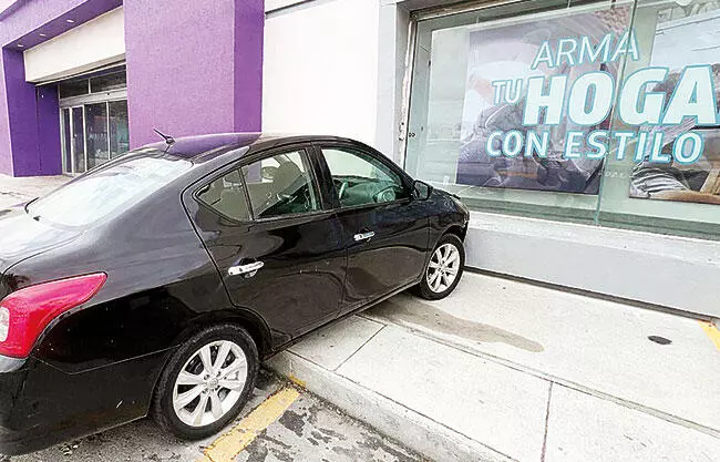 Monclova, Coah.- Un sexagenario se llevó un tremendo susto al impactar su auto contra la pared de una tienda departamental, luego de confundir los pedales de freno y acelerador; el percance vial catalogado como choque contra objeto fijo, dejó daños materiales, saliendo afortunadamente ileso el conductor.
