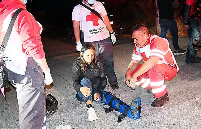 Monclova, Coah.- Una mujer resultó con una posible fractura en la pierna izquierda, tras un aparatoso accidente registrado la madrugada de ayer en la colonia San Isidro, en el cruce de las calles Torreón y Ocampo, siendo trasladada al hospital por paramédicos de la Cruz Roja Mexicana.