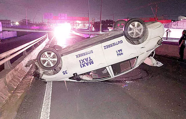 Monclova, Coah.- La volcadura de un taxi registrada durante la madrugada de ayer provocó el cierre temporal del puente elevado del bulevar Harold R. Pape, en el cruce con la avenida Sidermex a la altura de la colonia Eva Sámano.