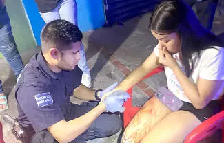 Al lugar acudieron paramédicos de Cruz Roja, quienes le brindaron los primeros auxilios, los cuales la trasladaron al Hospital General Amparo Pape de Benavides, ya que requería una sutura en la herida.