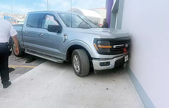 Al llegar los elementos, encontraron la camioneta Ford F-150, de color gris, con placas EY-4642-D, incrustada en la pared del comercio y trepada sobre la banqueta.
