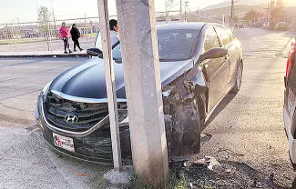 Monclova, Coah.- Una madre y su hijo sufrieron un aparatoso accidente en la colonia Otilio Montaño, luego de que un conductor que no respetó el alto se impactara contra el vehículo donde viajaban, provocando que la madre de familia se estampara contra el poste de concreto, la mañana de ayer.
