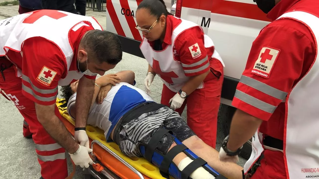 Tras la colisión, el motociclista salió proyectado y cayó sobre el pavimento, donde quedó lesionado. Paramédicos de la Cruz Roja Mexicana acudieron al lugar, le brindaron los primeros auxilios, le colocaron una férula en la pierna afectada y posteriormente lo trasladaron a un hospital para su atención médica.