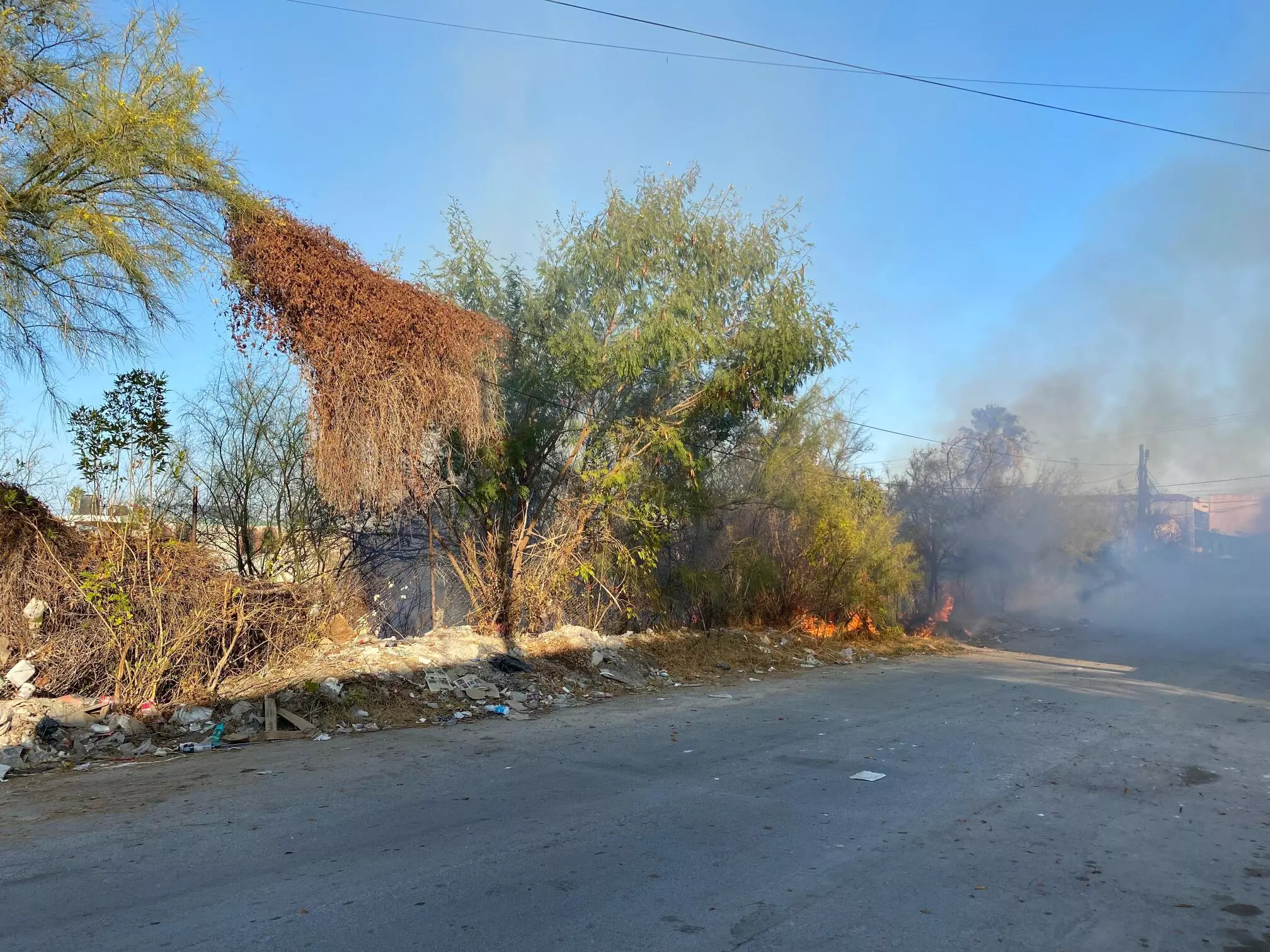 El siniestro se registró alrededor de las 16:00 horas, en el cruce de las calles La Ermita y Francisco Murguía, en la Zona Centro, donde vecinos salieron a intentar apagar el fuego con cubetas de agua.