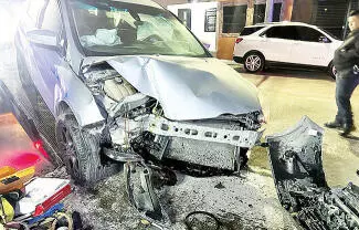 Tras la colisión, la unidad terminó incrustada contra una pared de concreto, ocasionando la pérdida total del automóvil como daños en la estructura.