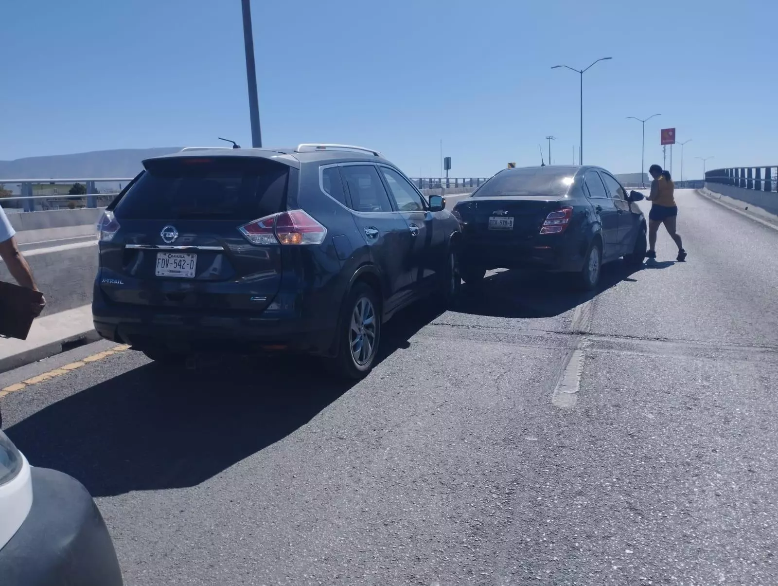 En el percance participó una camioneta Nissan X-Trail, color gris, con placas FDV-542-D, conducida por Ivana, señalada como presunta responsable por no guardar su distancia y terminar impactando la parte trasera de otro vehículo.