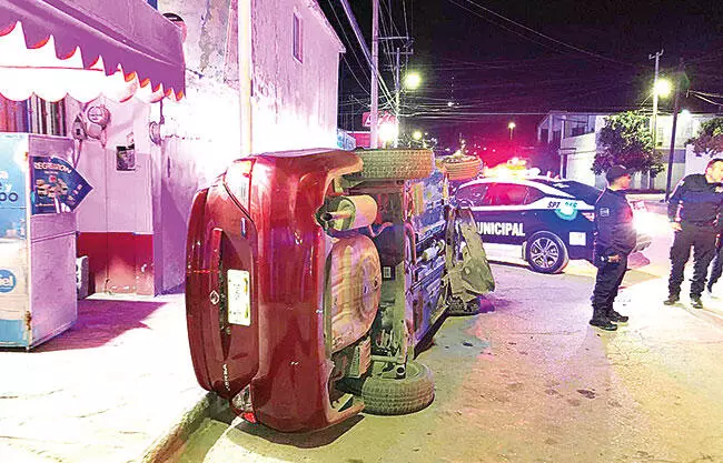 Tras el percance, el automóvil terminó volcado y recostado sobre su lado izquierdo, al filo de la banqueta de un conocido negocio de abarrotes, el dueño mencionó que la fachada de la tienda no presentaba daños, sin embargo, al escuchar el fuerte golpe salió de su vivienda de inmediato.