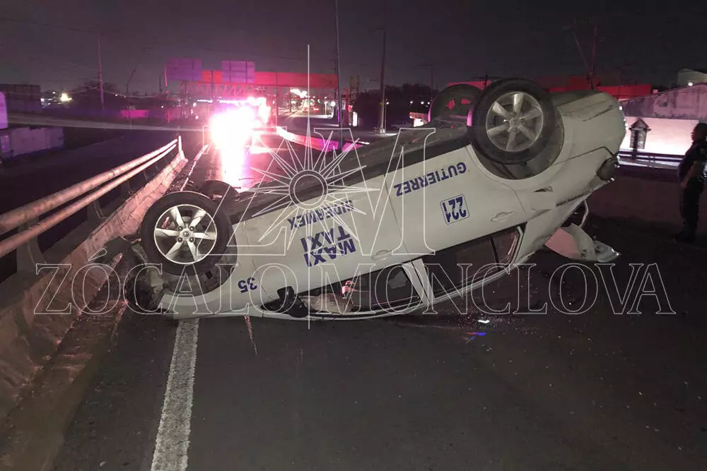 La volcadura de un taxi registrada durante la madrugada de ayer provocó el cierre temporal del puente elevado del bulevar Harold R. Pape, en el cruce con la avenida Sidermex a la altura de la colonia Eva Sámano.